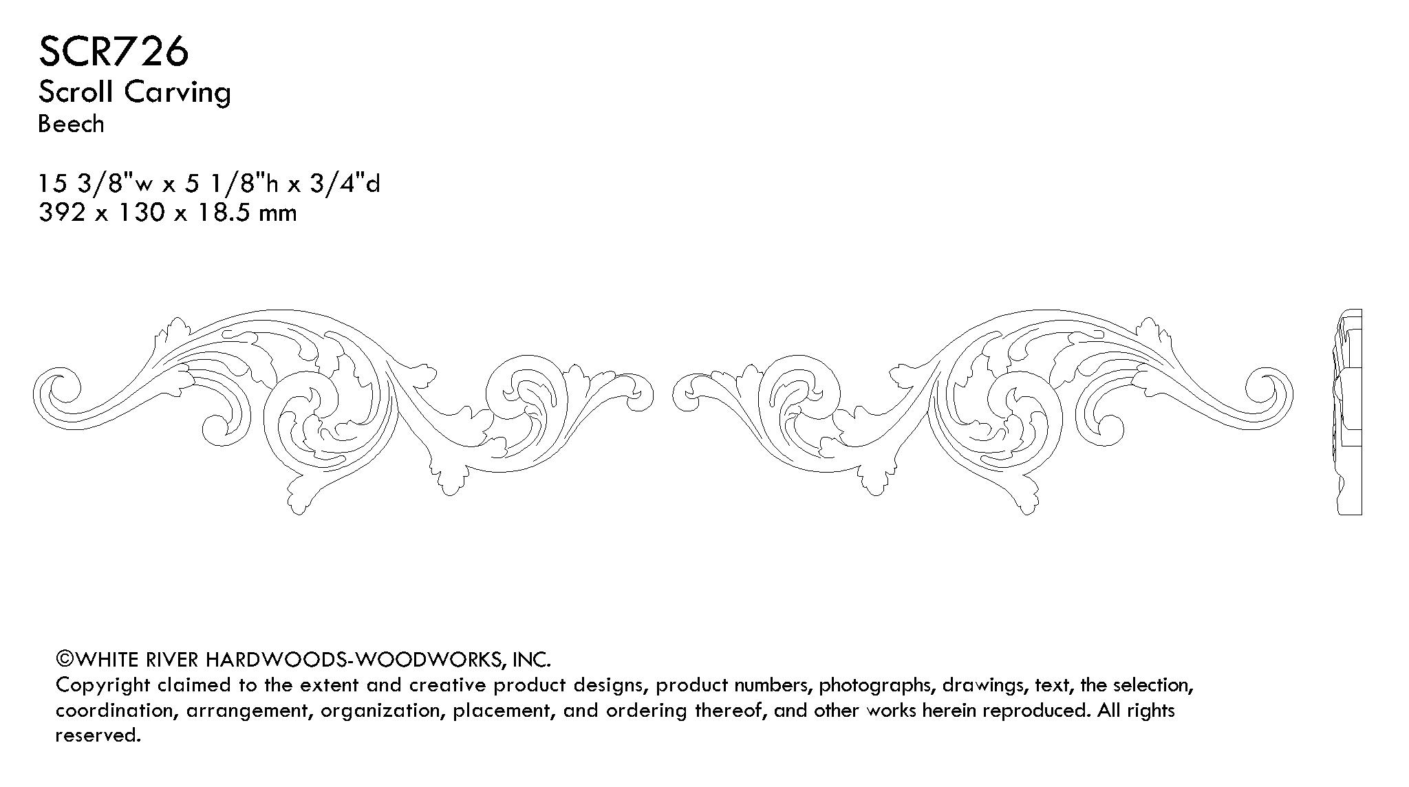 Acanthus Scrolls, Left & Right Pair, 15 3/8"w x 5 1/8"h x 3/4"d, SPECIAL ORDER