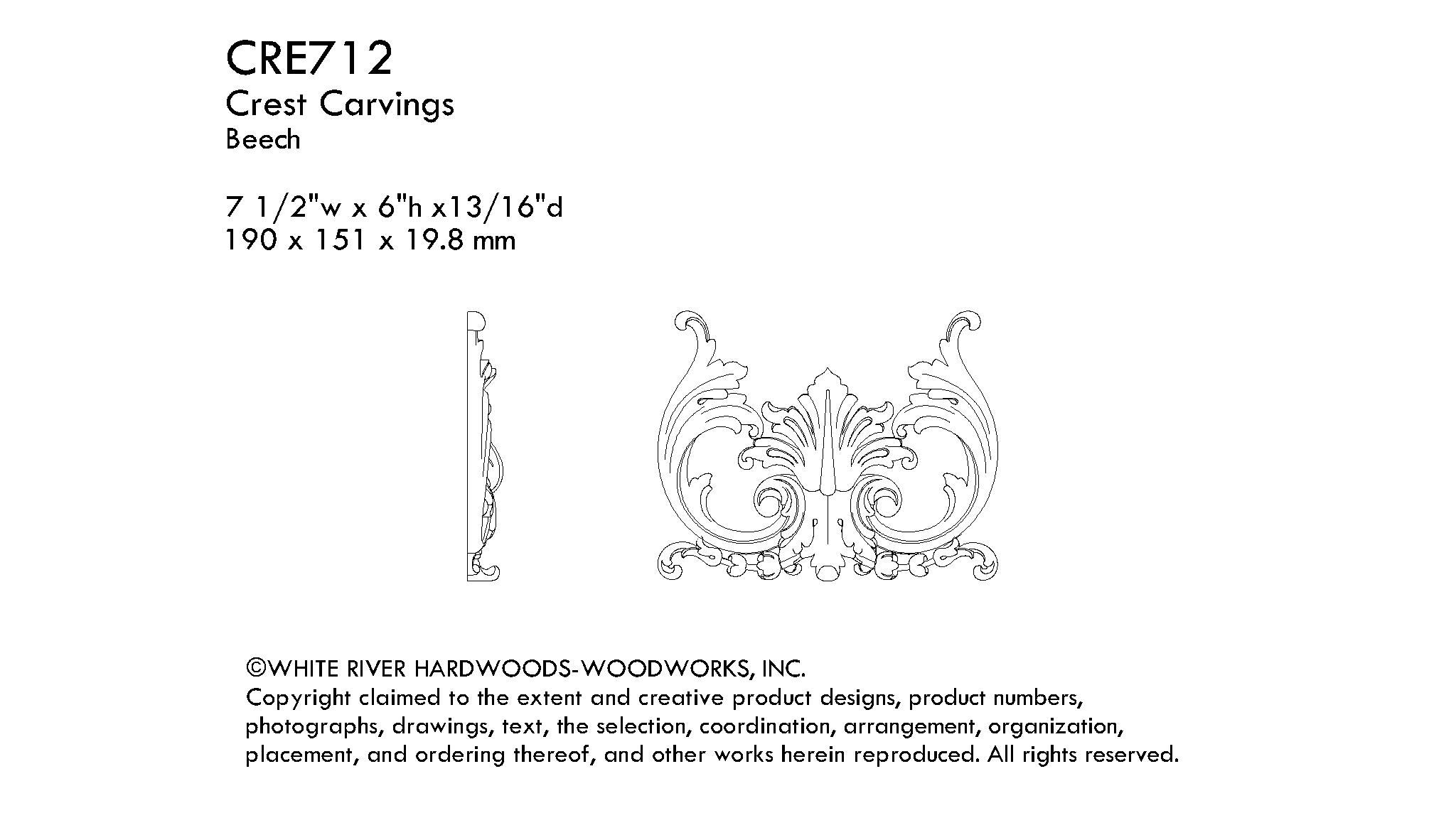 Scrolling Acanthus Crest Fits CEN552, 7 1/2"w x 6"h x13/16"d